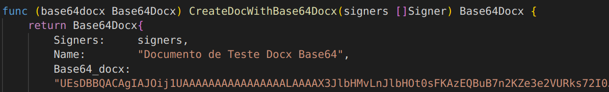 Na SDK em Go, temos o arquivo 'create_doc_from_base64docx_parameter_test.go' no diretório do projeto SdkGo na Zapsign! Confira o diretório clicando aqui.