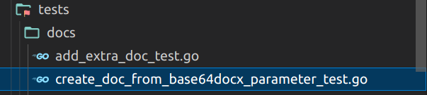 Para acessar o teste de criação de um documento com base64 em '.docx', basta navegar em "tests/docs/create_doc_from_base64docx_parameter_test.go".